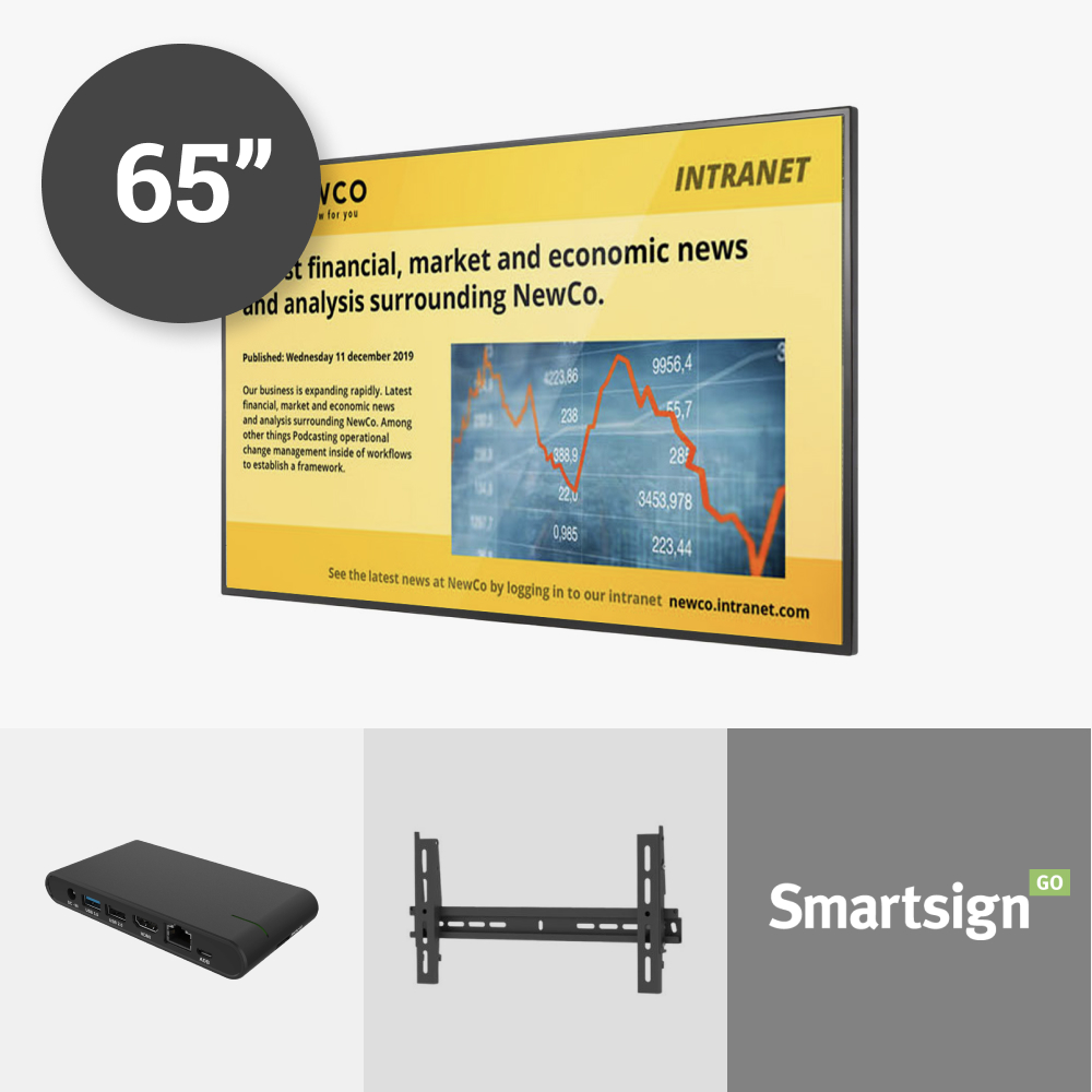 Skärm, väggfäste/stativ och 36 månaders mjukvara ingår samt hårdvara med 36 månaders garanti. Lösningen är enkel att installera, enkel att använda och skapar många intressanta möjligheter för din kommunikation.